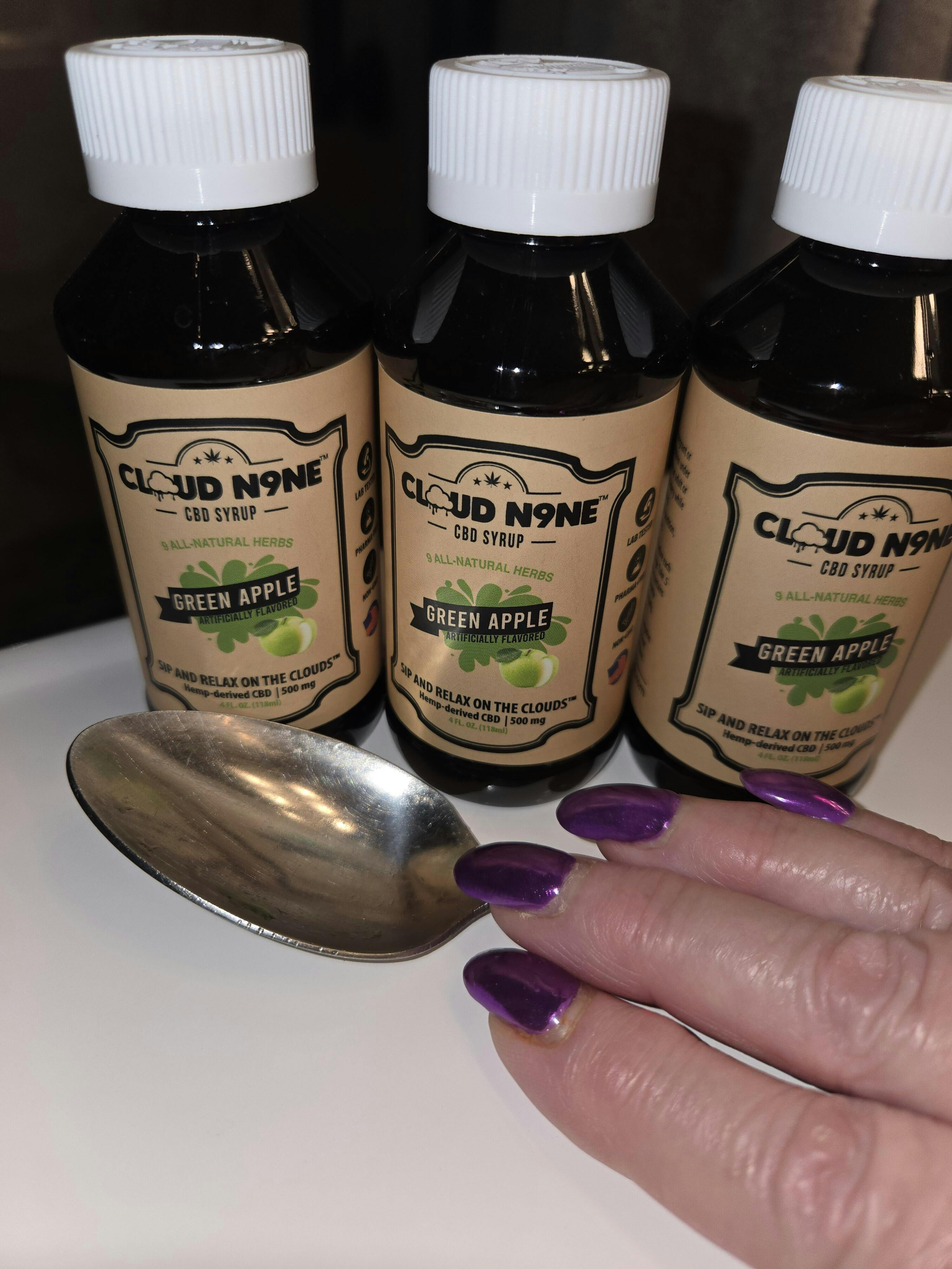 Cloud nine syrup is my nighttime ritual. 1 spoonful before bed and I sleep for hours. I love the green apple 🍏. My favorite.