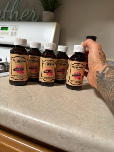 Looking for a natural way to relax and unwind after a long day? Look no further than bubble gum-flavored Cloud N9ne CBD Syrup! Our unique blend of CBD and 9 highly concentrated, all-natural herbs are carefully fermented in-house for maximum potency. With the correct dose, you'll feel a soothing euphoria wash over you and experience chill, cloud-like vibes that make you feel like you are floating on the clouds and ultimate relief. Don't miss out on this exceptional product – try Cloud N9ne Syrup today!